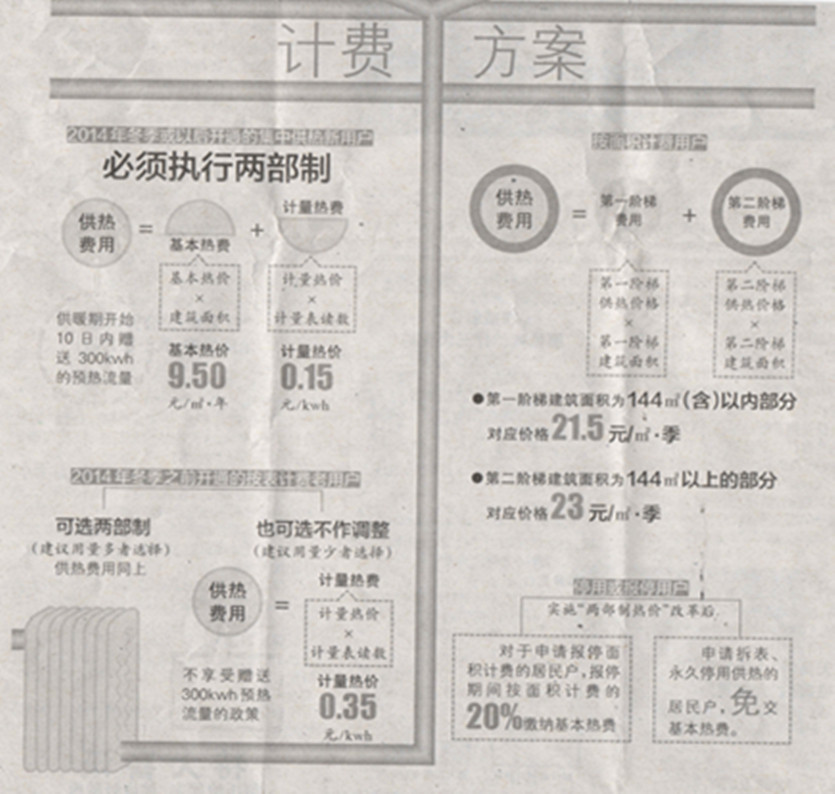 供暖计费首推“两部制” 按平方米收费至少涨4元