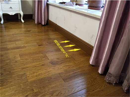已装修房屋明装踢脚线供暖,墙面上看不见管道。 精装房客户安装踢脚线供暖,供暖系统管道沿着踢脚线供暖后面布置,墙面上看不见管道,不破坏原来装修,而且踢脚线供暖与地面颜色完美搭配融为一体。