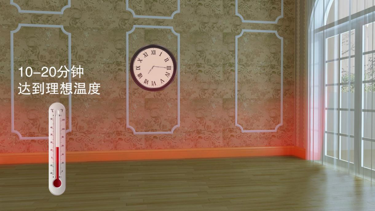 传统暖气片安装在房间一角,而且又是以对流为主,整个房间达到理想温度需要较长时间,一般要40分钟到1个小时