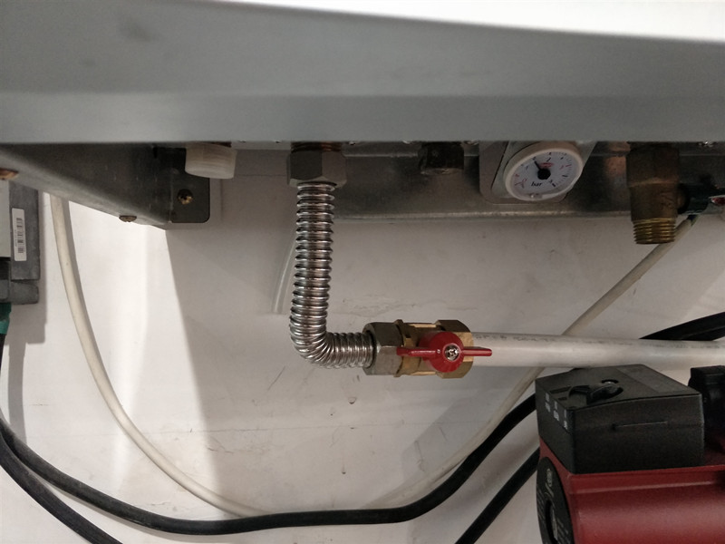 (已装修房屋明装踢脚暖锅炉下安装恒尔暖卡套式外丝球阀)