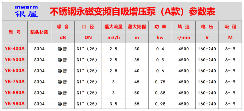 银屋(inwarm)永磁变频恒压自吸增压泵家用全自动不锈钢压力泵自来水太阳能水泵