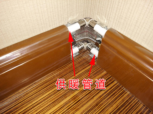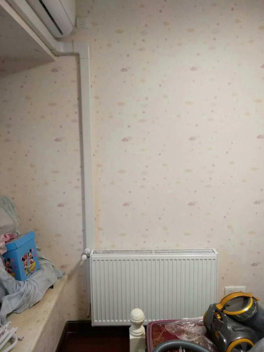我知道,这种精装房是不可能再安装地暖了,就只能选择其他方式了。年前去一个多年不见的老朋友家玩,发现他家也装了暖气,不过当时装修时没有安装,他说几年前老婆生孩子才明装的暖气片,感觉供暖效果还不错,但每个房间墙面上布置的供暖管道,实在是难看,而且才用几年暖气片上面的墙面就被熏黑了。如果是我,就是冻成狗,我也不会在我的新房子里这样安装,大家看看这样安装管道布置在墙面是有多难看。