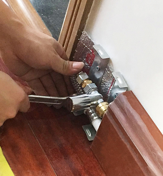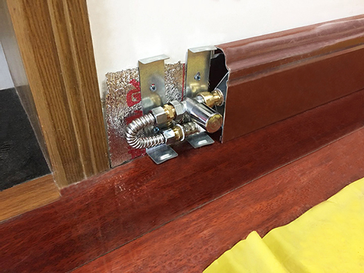 第十二步,系统试用行。安装好后,师傅们开启锅炉,然后一个一个房间调试,很快每个房间的踢脚暖都热了,只要热水到哪个房间,踢脚暖表面摸着迅速就热了,真是太快了。在试运行期间,师傅们还是每个接头进行检查,确保没有任何渗漏水地方。