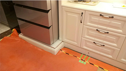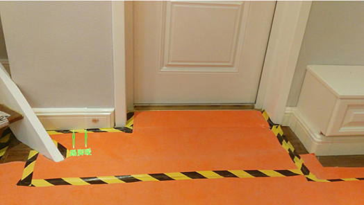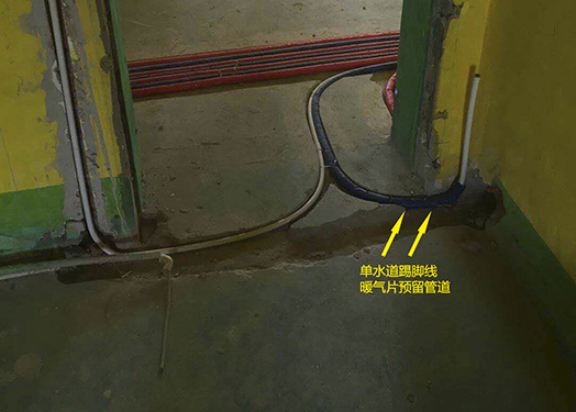 图片说明:单水道踢脚暖系统管道预留在墙角处