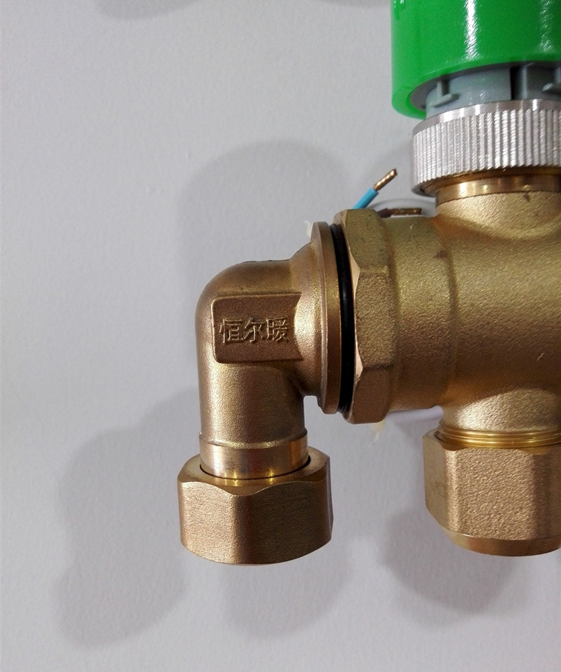 7、活接弯头设计小巧,活接螺母向下与外丝球阀或外丝直接之间相连,不占用空间,即使分水器边上只有有5cm长的空间,就可以装得下,以后检修或冲洗十分方面,即使分水器不动,都可以把活接弯头和球阀拆卸下来;