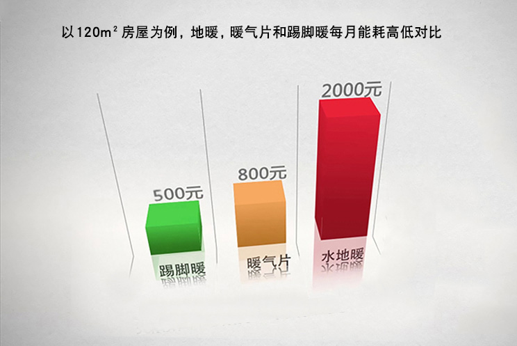 在相同热源相同房型相同楼层进行比较,踢脚暖能耗最低,最节能,其次是暖气片,再者是空调,耗能最高的是地暖。曾经暖通专家做过一个地暖、暖气片和踢脚暖三种水暖方式的能耗对比,以120平米的房屋用燃气壁挂炉作为热源计算(包括家庭做饭和生活热水耗气,因为是同一个燃气表),地暖每个月2000元左右,暖气片每个800元左右,踢脚暖每个月500元左右。