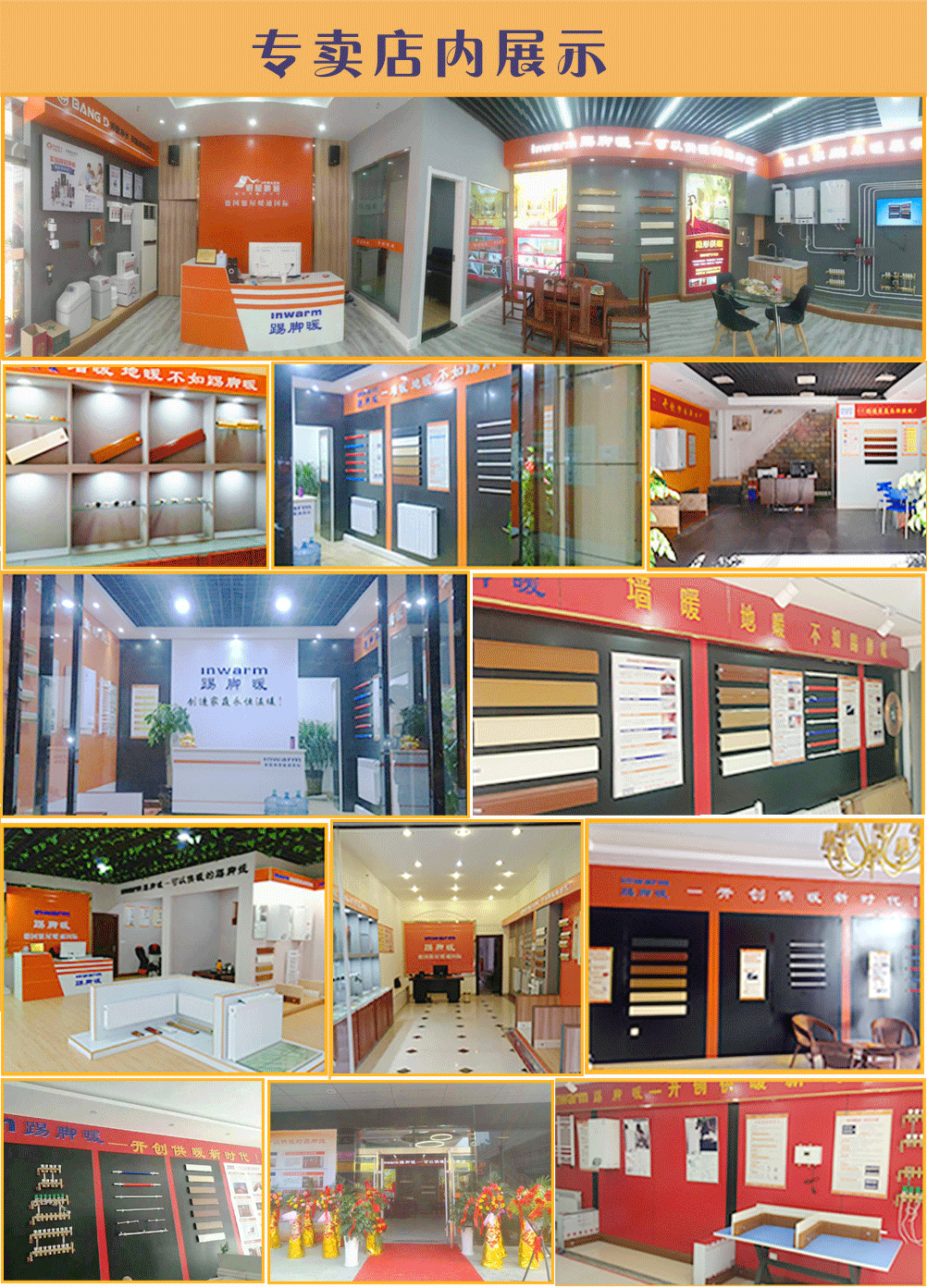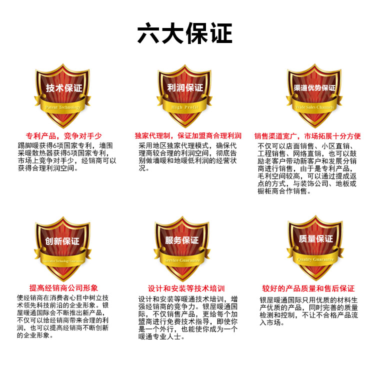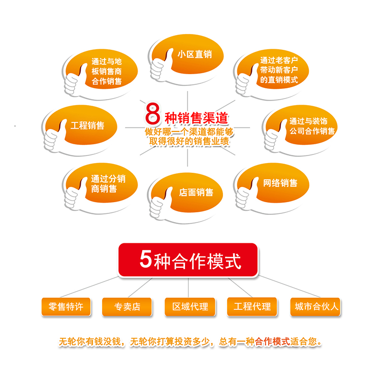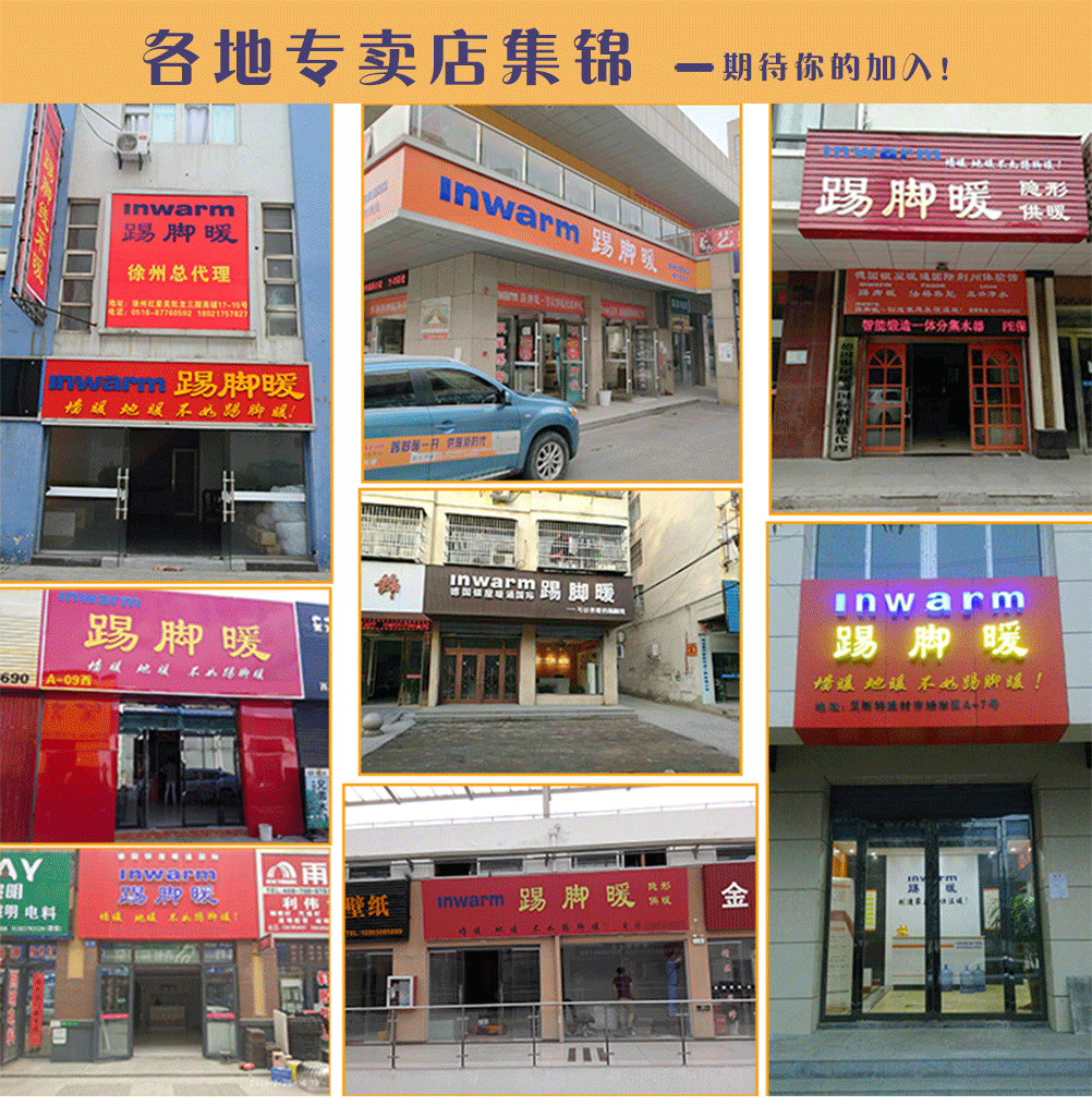 inwarm 踢脚暖——创造家庭永恒温暖!8种销售渠道,6种合作模式,盈利方式多多,年入百万不是梦。8种销售渠道:小区直销、和装饰公司合作销售、和地板销售商合作销售、专卖店销售,建立分销商,网络销售、工程项目销售和通过老客户推荐销售等;6种合作模式:试销商、零售特许、工程销售代理、专卖店加盟、区域代理和城市合伙人。