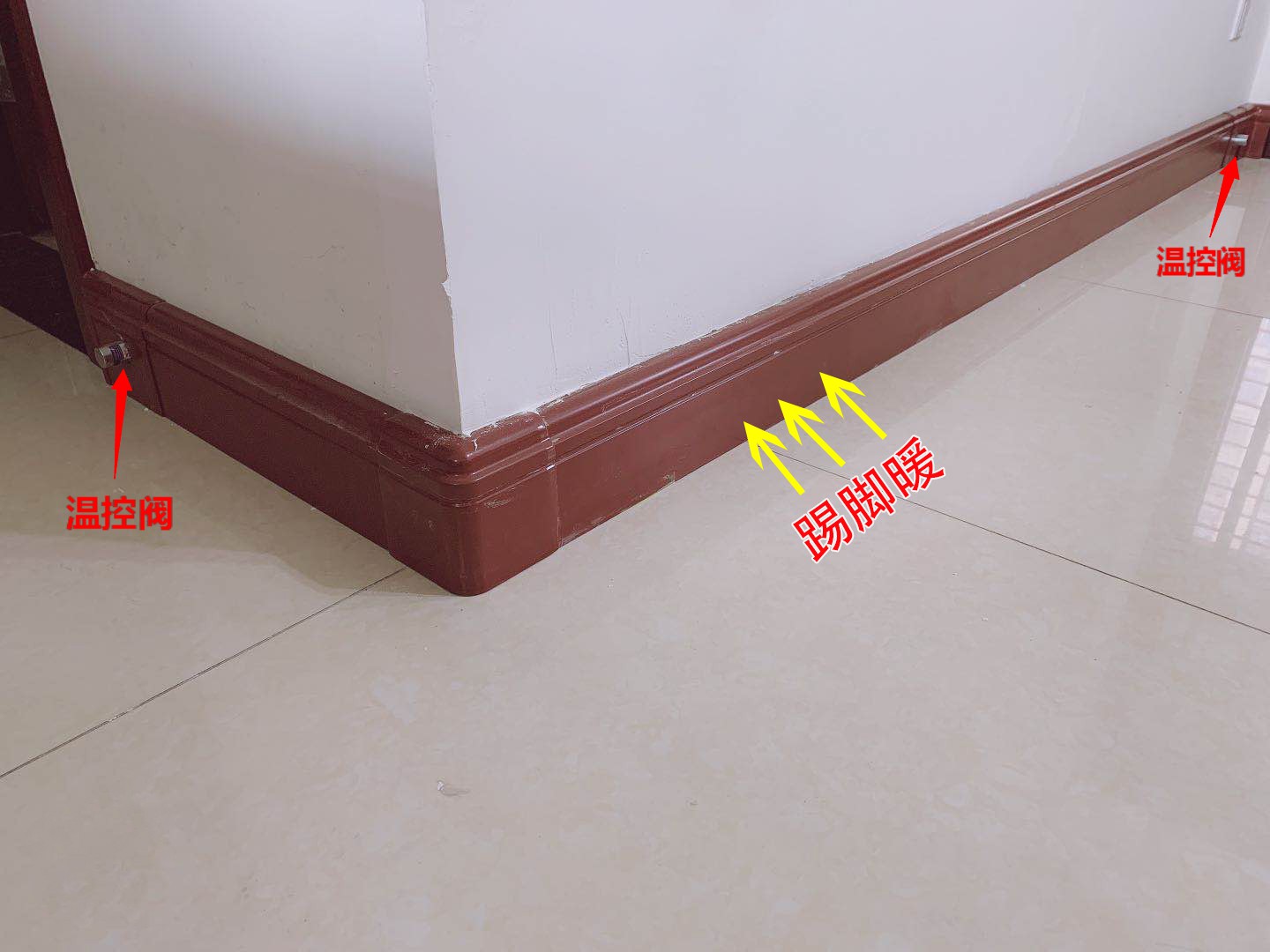 (在银屋踢脚板暖气片的进回水口安装专用温控阀)
