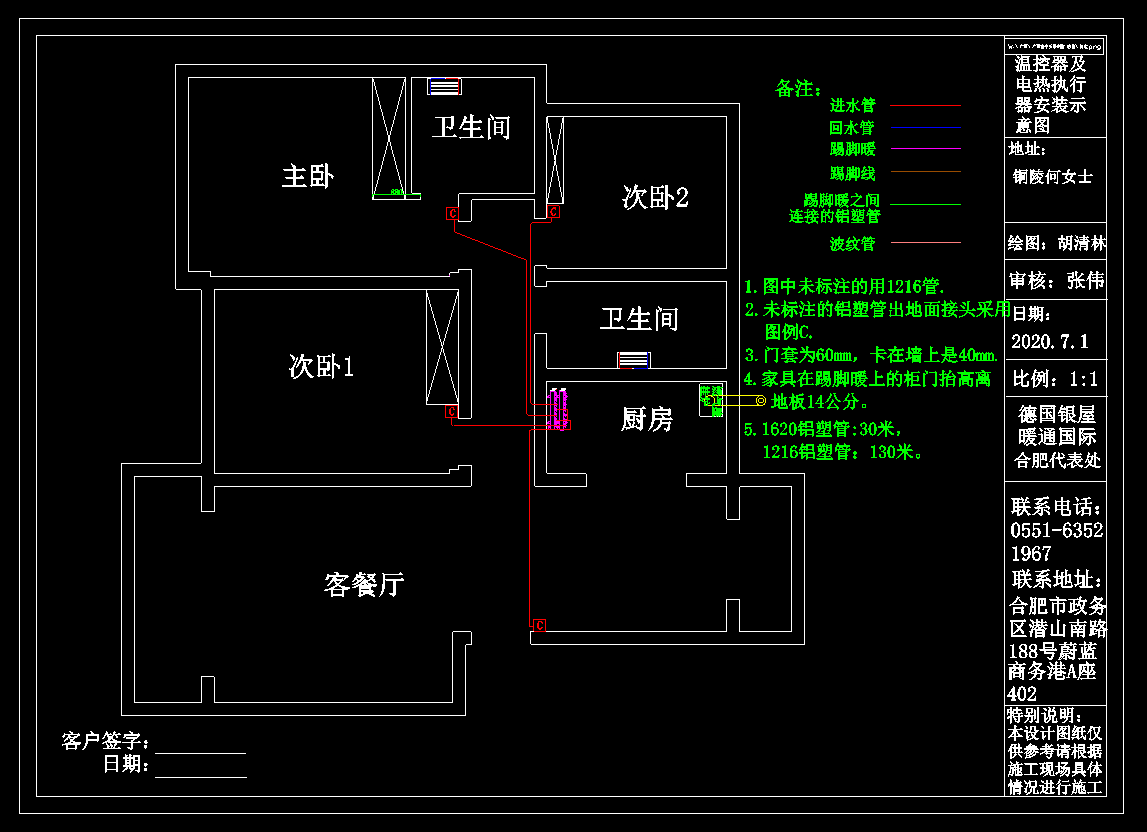 (踢脚暖采暖安装柜门下阴角处用紫铜管连接)