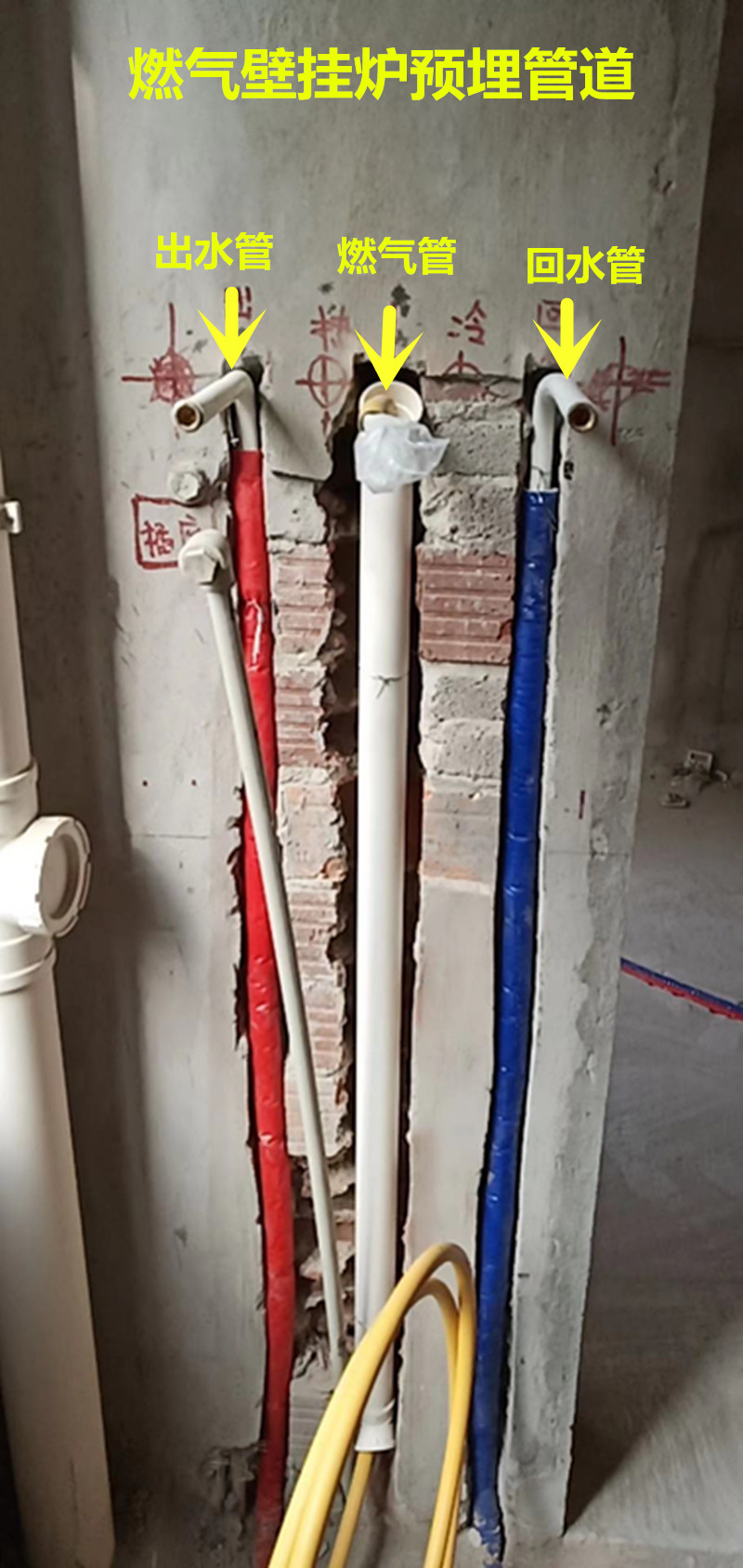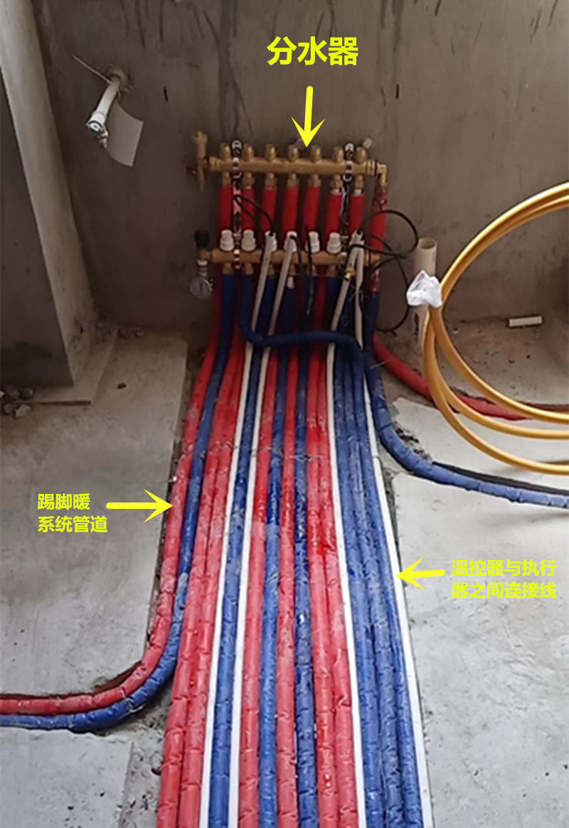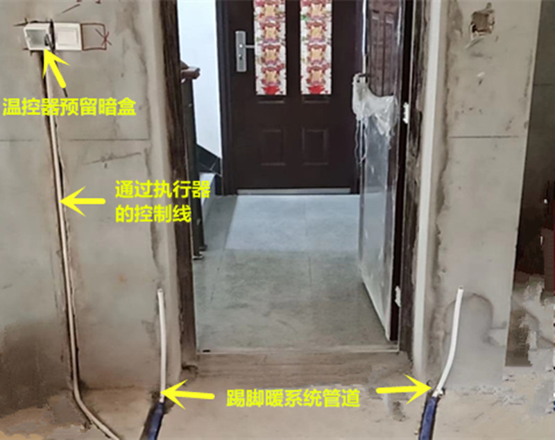 (系统管道与双水道踢脚暖采暖连接处尚未连接)