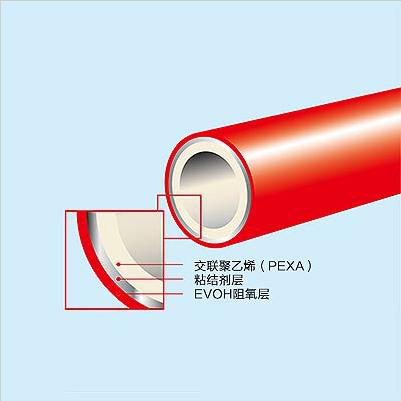 外层为聚乙烯塑料,内层为交联聚乙烯塑料,嵌人金属层为铝合金的复合管。适合较高的工作温度和流体压力条件下使用。