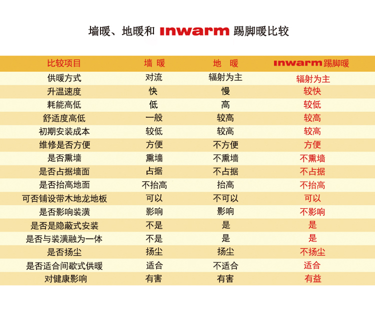 从人体脚部加热,符合人体脚暖头凉的生理要求,而且不扬尘,不会引起呼吸系统疾病。