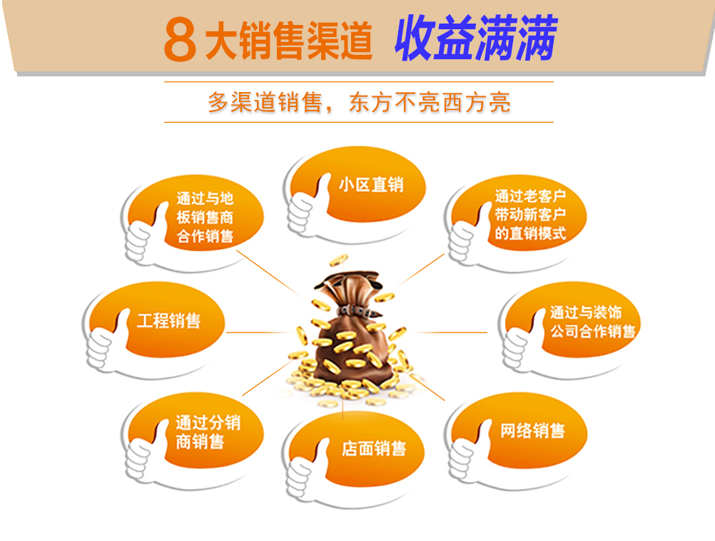 10种以上销售模式,你在哪方面有优势就可以加盟哪种渠道销售,也可以多渠道线下线上结合销售,销售模式多,不害怕没有销量。