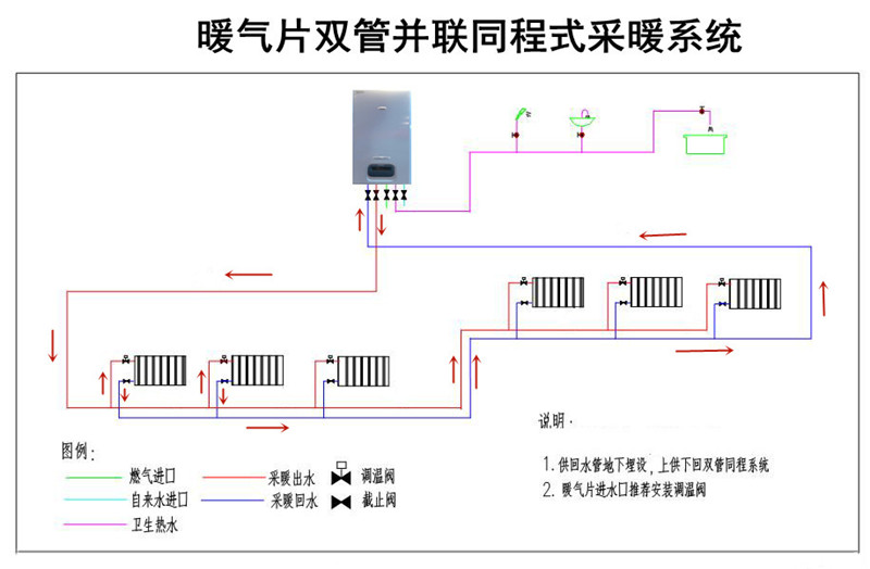 暖气片双管同程式采暖系统