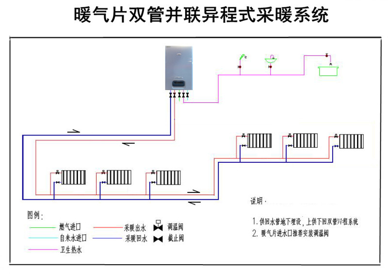 暖气片双管异程式采暖系统