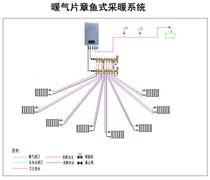 (图九、暖气片章鱼式采暖系统)
