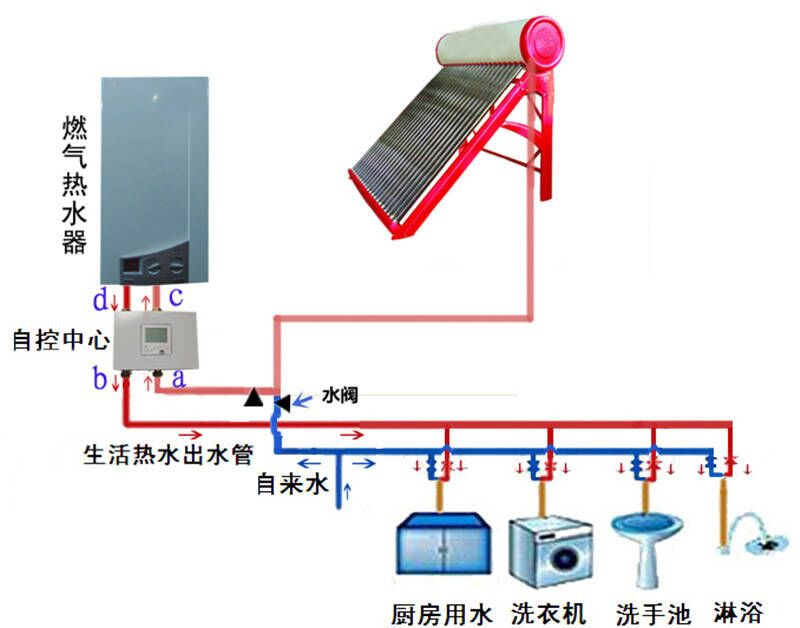 (太阳能和燃气热水器如何组合一起自动切换供热水图)