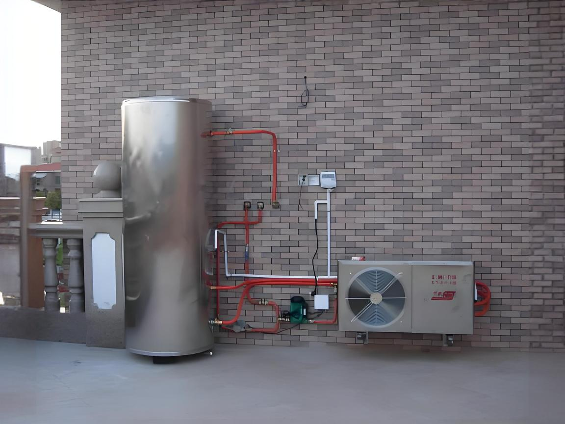 主热源:空气能热水器(外机挂外墙不占阳台,0°C以下低温照样高效工作,北方冬天也能喝‘热水饱’)