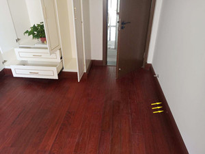 刚安装完成的深棕色银屋踢脚暖地暖,实景视