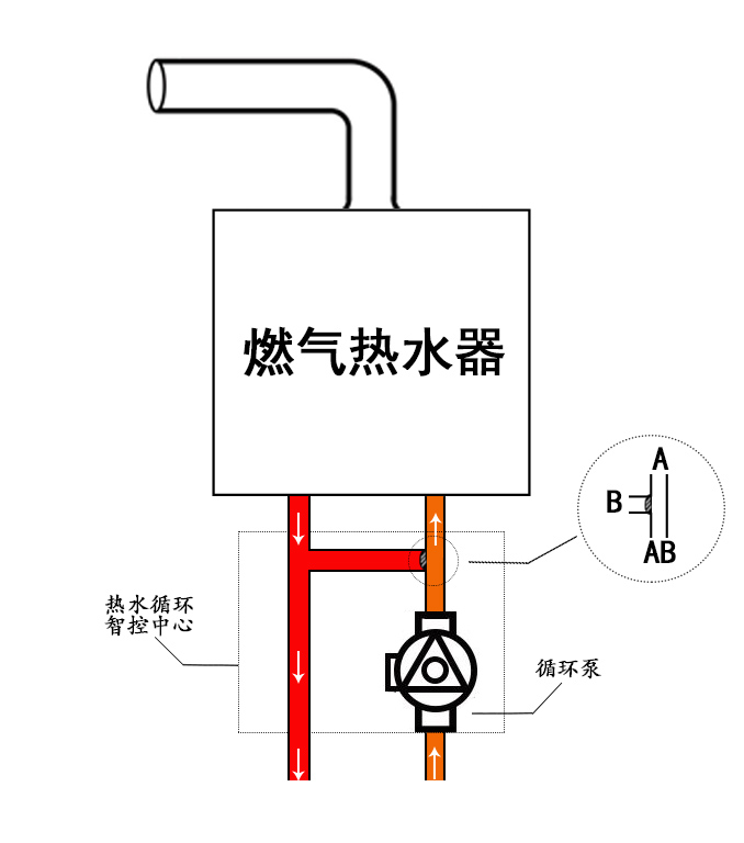 (图1、燃气热水器+回水器热水循环系统图)
