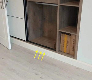 和上一个用户家中白色踢脚线搭配白色柜子不同的是,白色踢脚板采暖散热片在这里更好的体现了装饰上的过渡效果,和柜子的浅灰色部分搭配显得简约大气。
